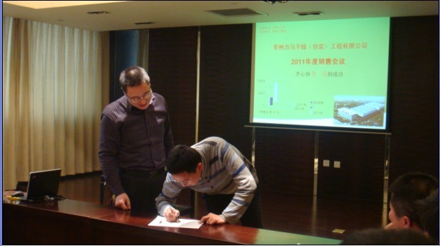 常州力馬干燥(包裝)工程有限公司2011年度銷售會(huì)議于2011年2月18日在常州新都大酒店竹林廳勝利召開(kāi)。