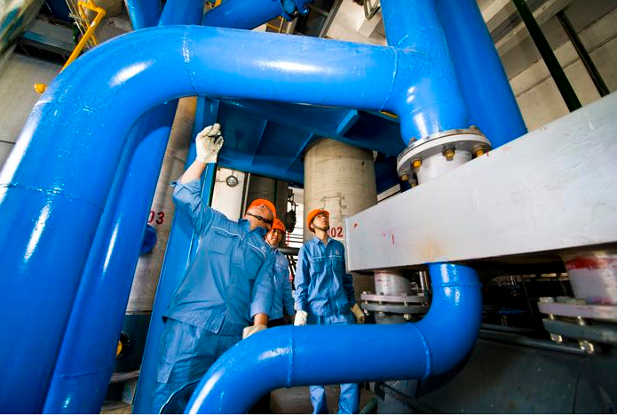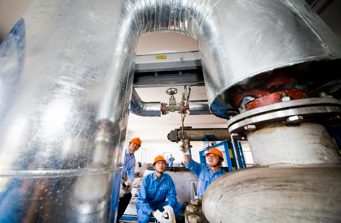 (圖為技術(shù)人員正在檢查污泥干化設(shè)備運(yùn)行情況)