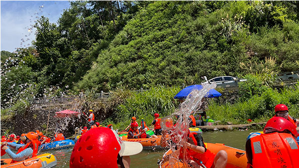 第二天體驗水上版的速度與激情、華東地區(qū)最刺激漂流之一的虎嘯峽激流探險漂流。為期兩天的游玩完美畫上句號。