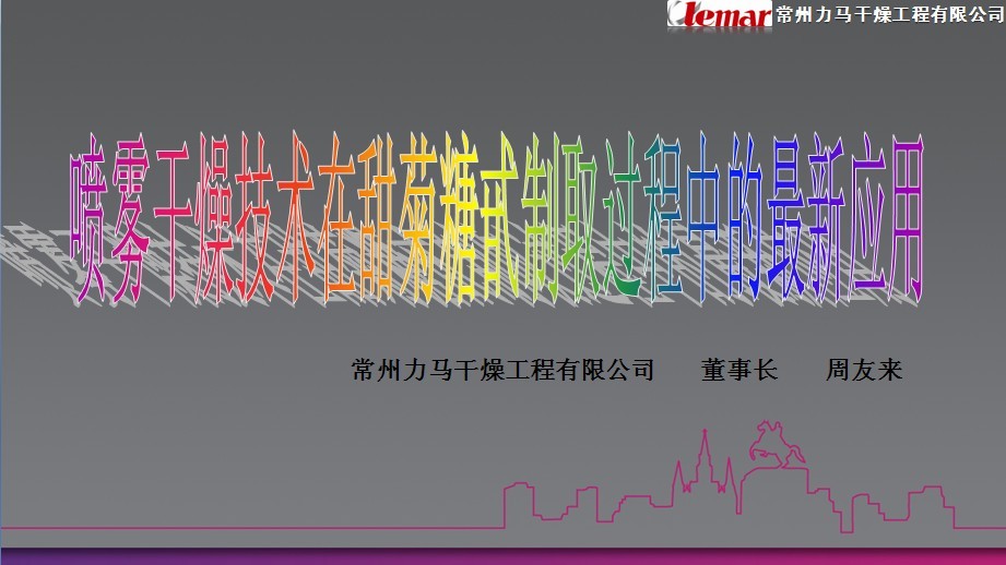 常州力馬干燥工程有限公司董事長周友來、總經(jīng)理朱向華應(yīng)邀參加了此次會議,并做了“關(guān)于噴霧干燥技術(shù)在甜菊糖甙制取過程中的^新應(yīng)用”的技術(shù)專題報(bào)告,報(bào)告采取PPT 的形式,直觀生動的展示了力馬企業(yè)^新噴霧干燥技術(shù)在甜菊糖甙制取領(lǐng)域上的應(yīng)用。