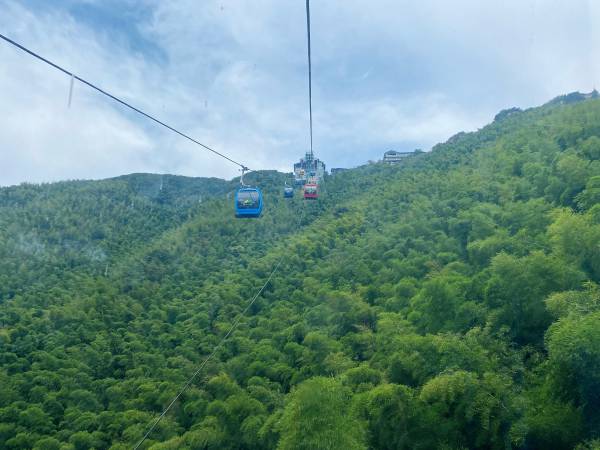 登至山頂后,有的同事選擇徒步下山,有的則選擇乘坐觀光纜車。
